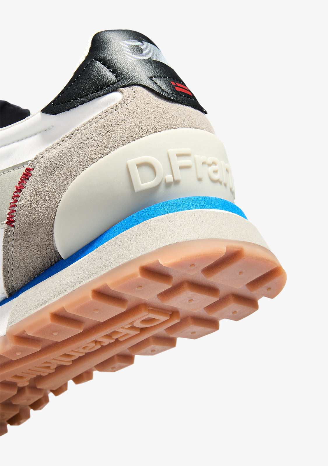 They feature an EVA and TPR outsole for a lighter feel and a comfortable step, offering stable traction for daily movement. Our emblem is placed on the front, side and heel, and the outsole includes custom tread detailing inspired by the D.Franklin flag. An extra white lace is included in the box.