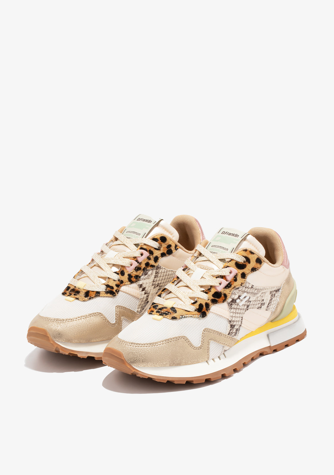 The Vibla Zig Patch Gold by D.Franklin are the perfect combination of modern design and functionality. This model features a TR sole with perforated details, providing added lightness and style to every step. The mixed-material toe cap ensures superior flexibility, making them ideal for adapting to your daily movements.