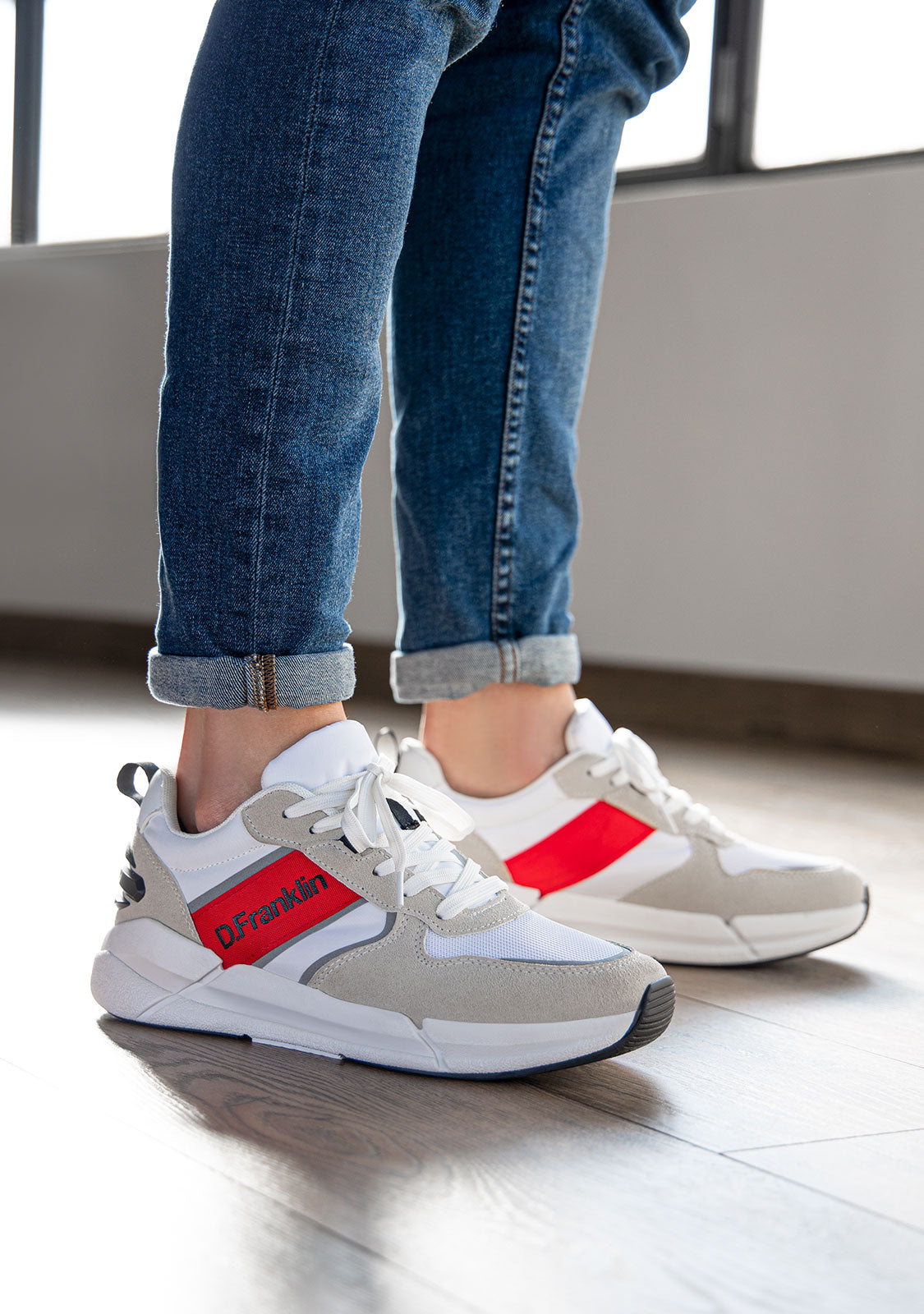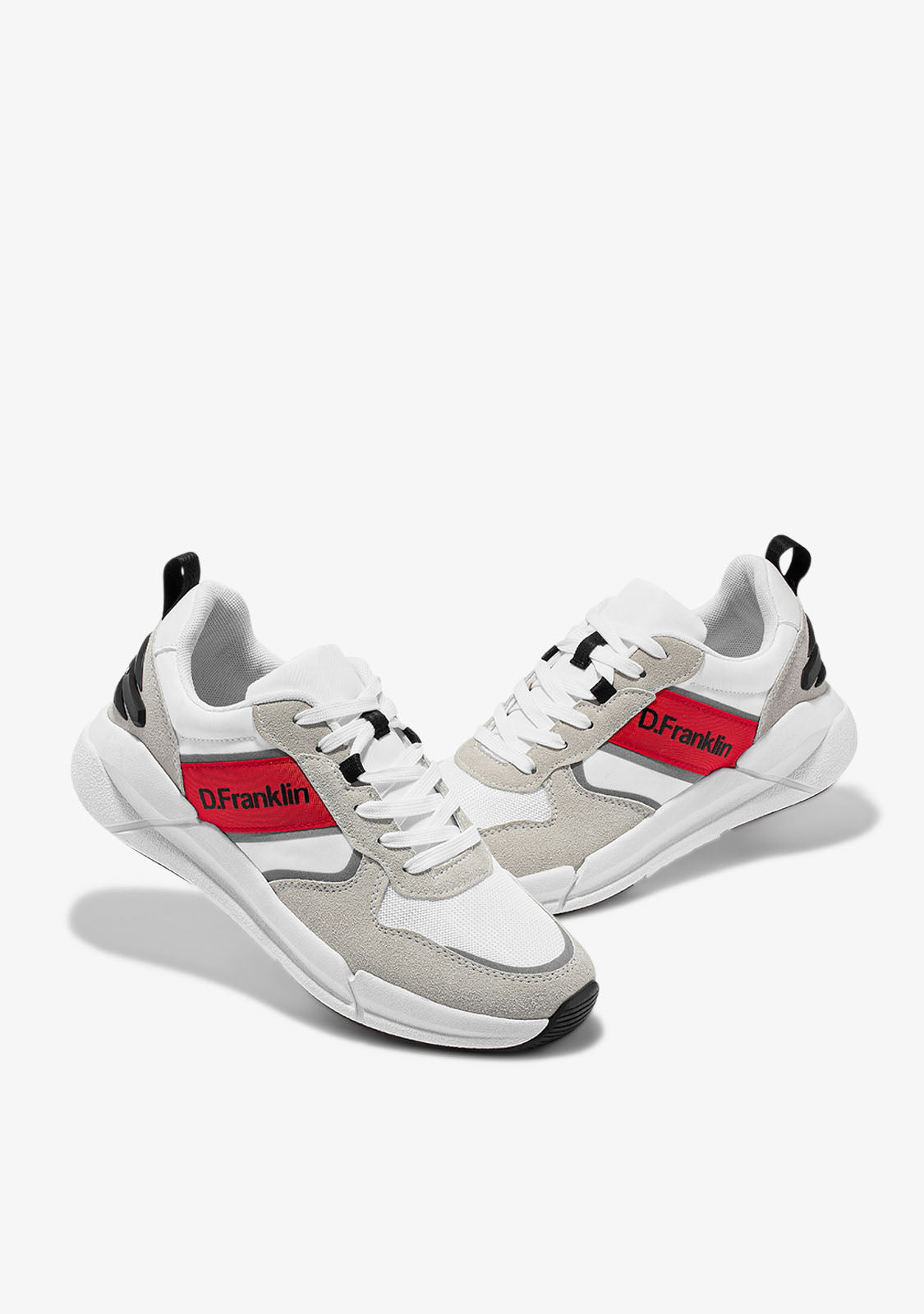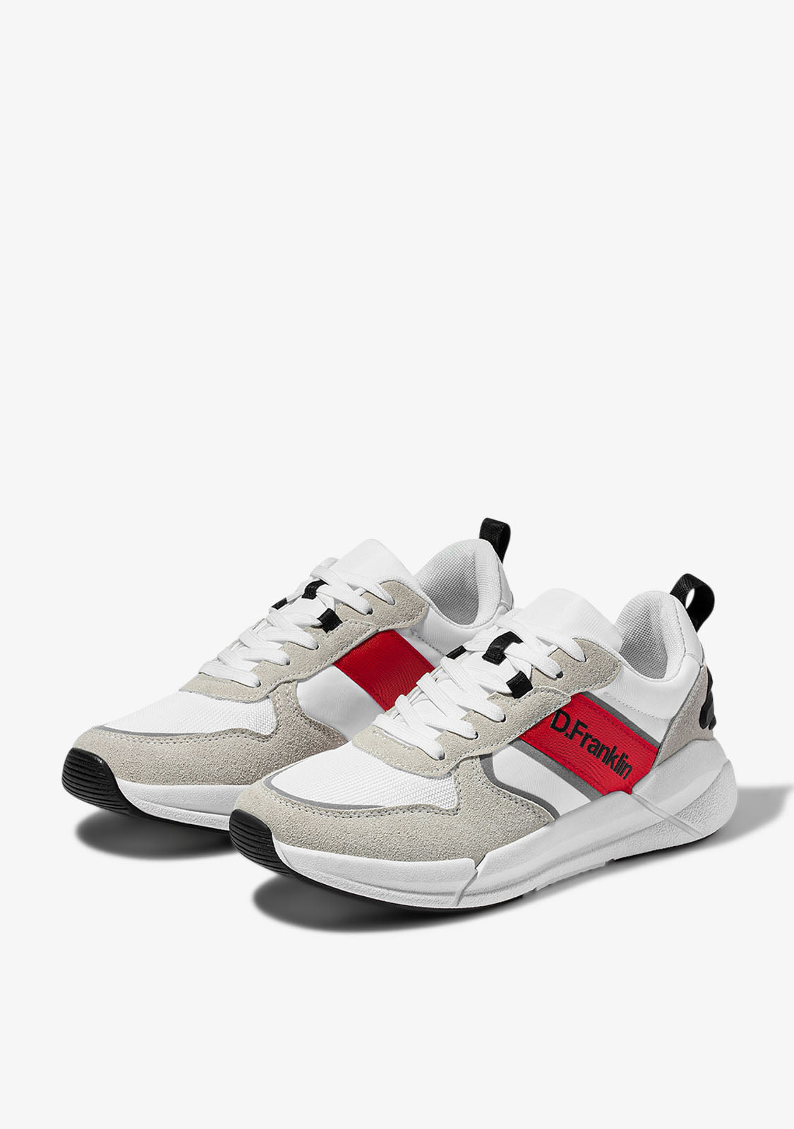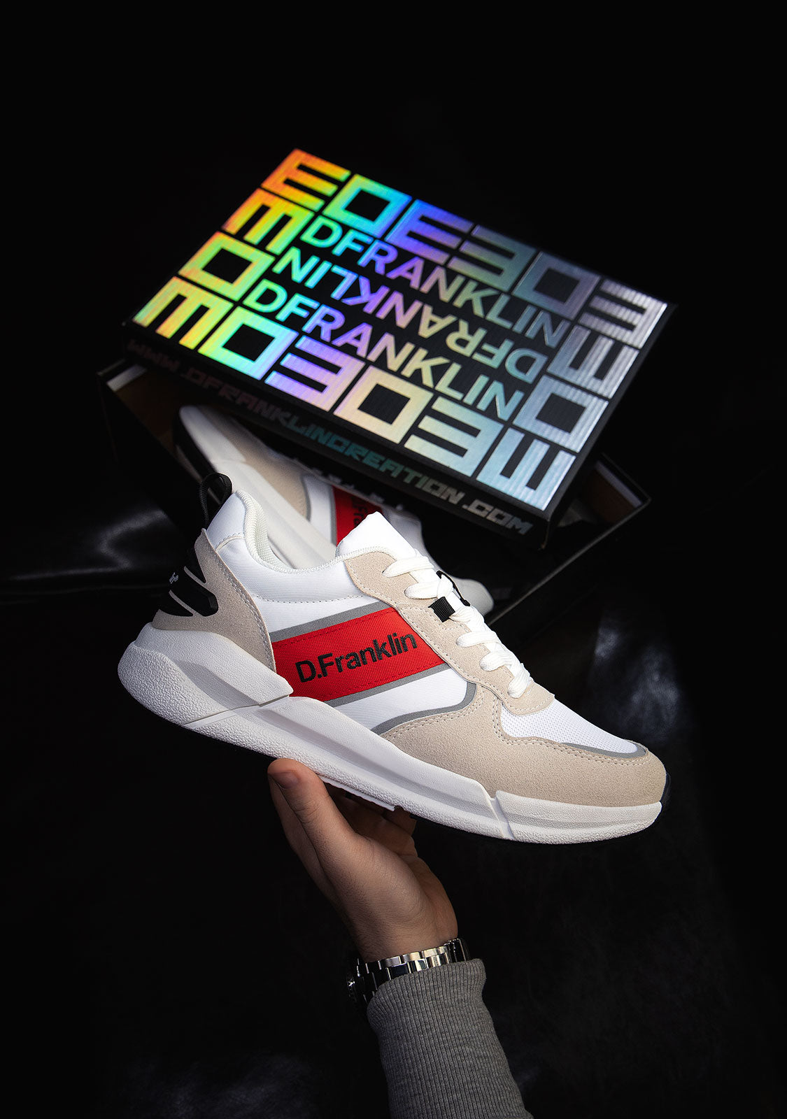 The fusion between past and future. The Walker collection combines the look of sneakers from the 80s with a contemporary style inspired by bold colors and different textures. The Walker White combines white with contrasts in red and black to achieve daring sneakers that stand out by their own