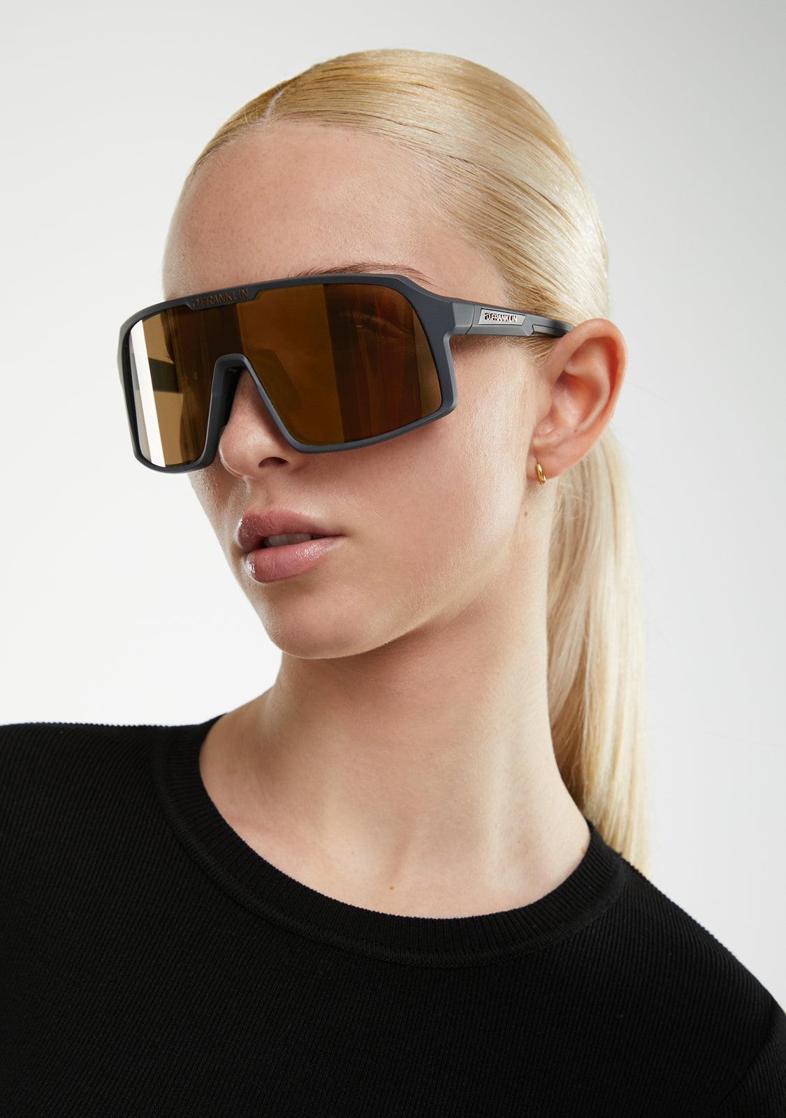 The Wind Charcoal / Bronze model ensures maximum protection and comfort thanks to its bronze panoramic mirrored lenses and silicone nose pads for a secure and ergonomic fit.