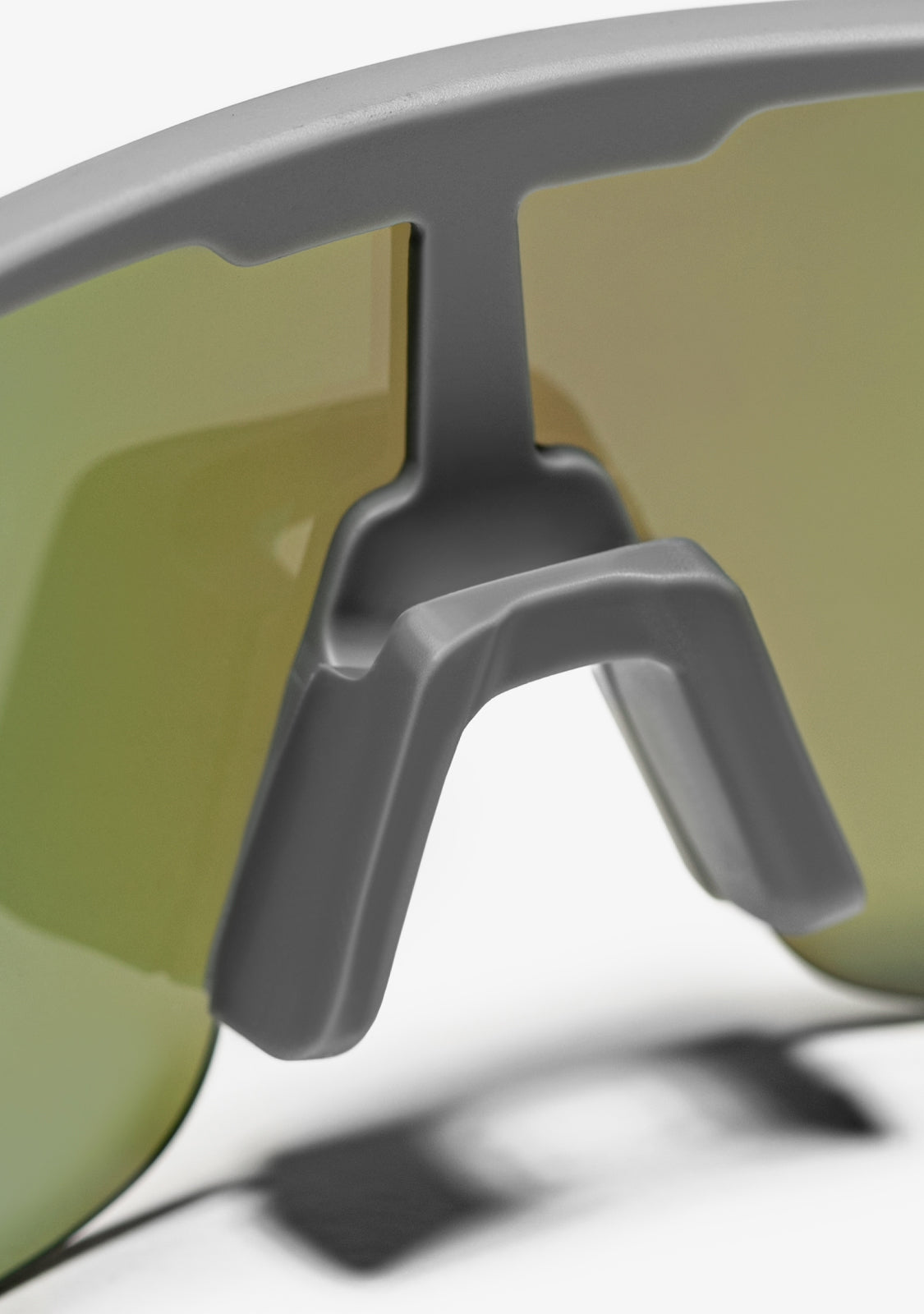 With 130 mm temples, ends, and nose bridge with silicone pads, these sunglasses ensure grip and comfort even in motion.