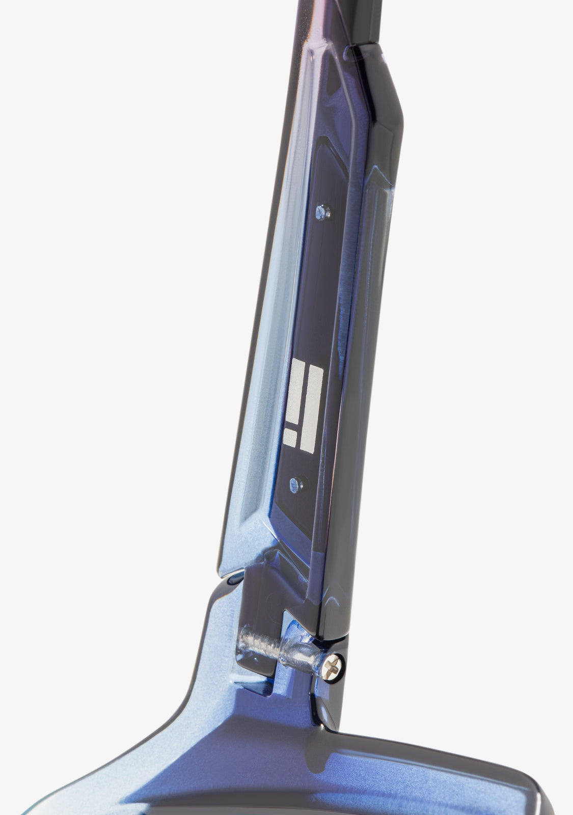 The Wind model features a purple finish and an aerodynamic frame designed for stability and flow. It includes a 144 mm front and 138 mm lenses, exclusively engineered to optimize wind resistance. The 130 mm arms display our emblem on both sides, while the silicone pads on the tips and nose bridge ensure a secure and comfortable fit.