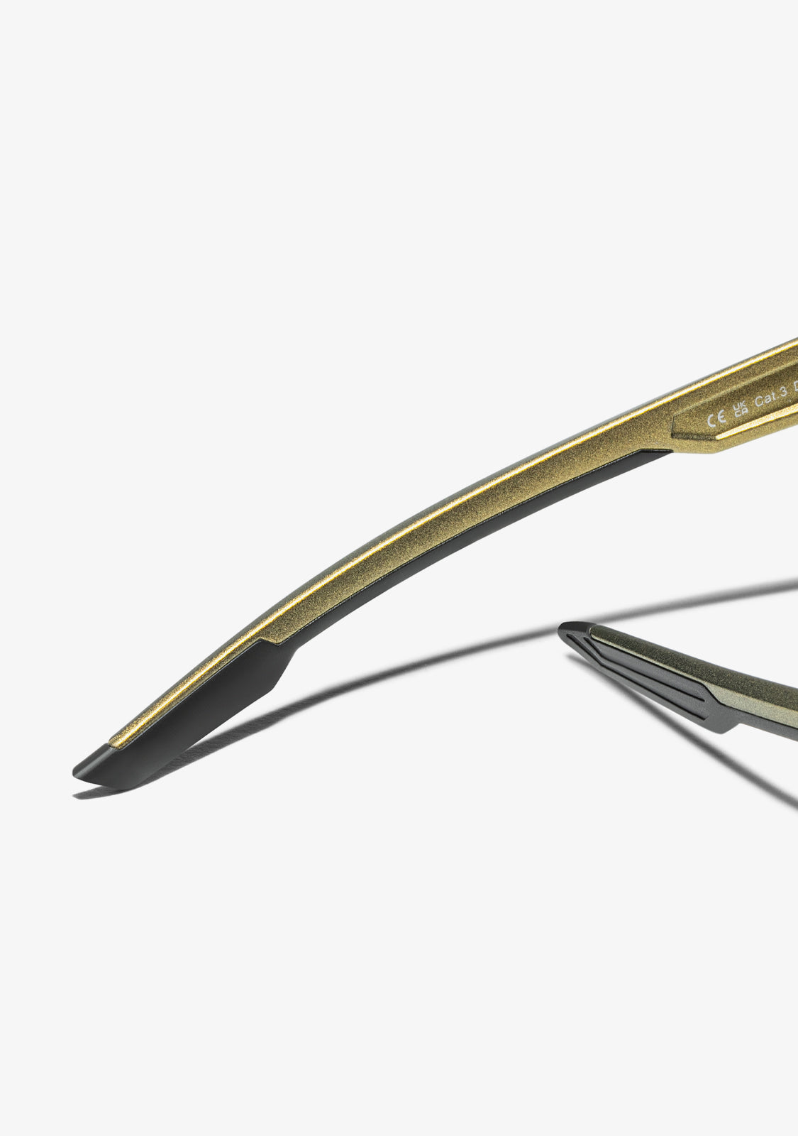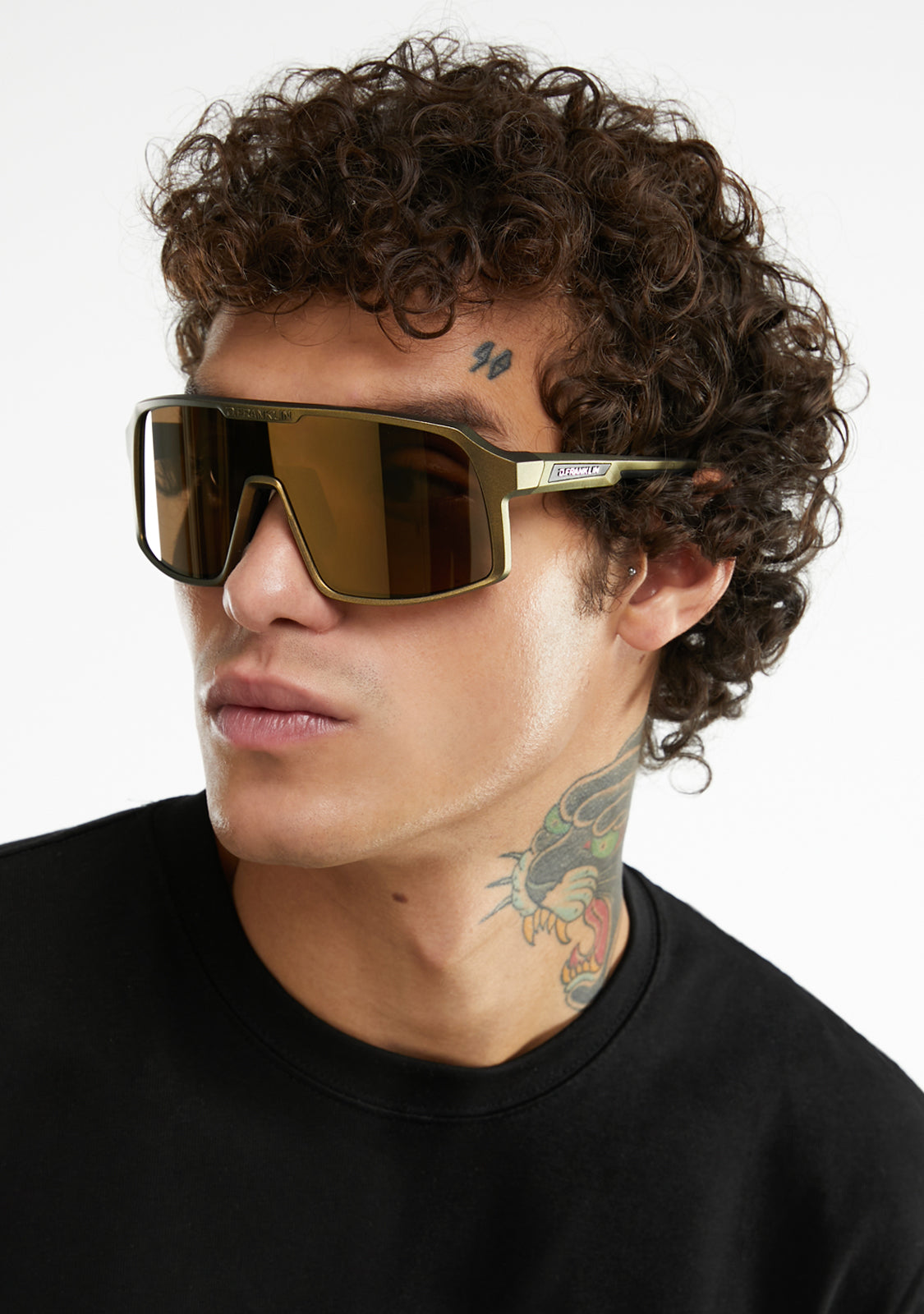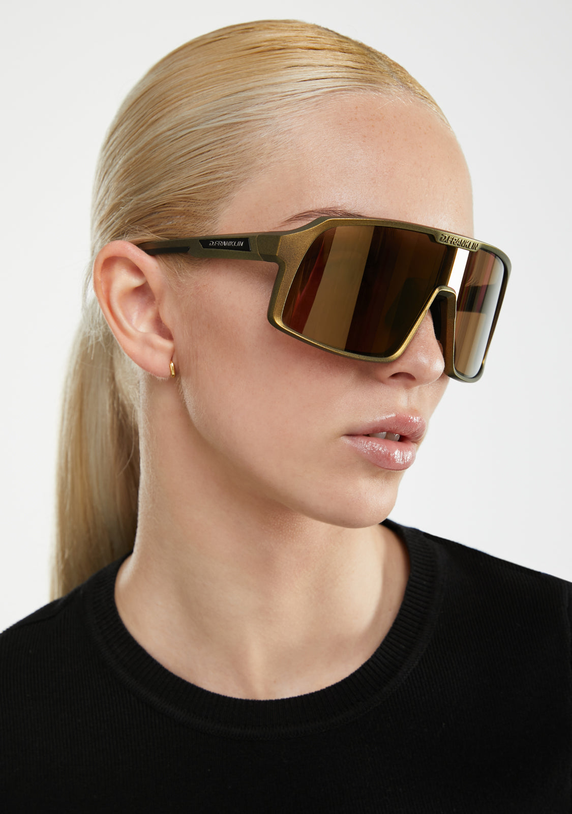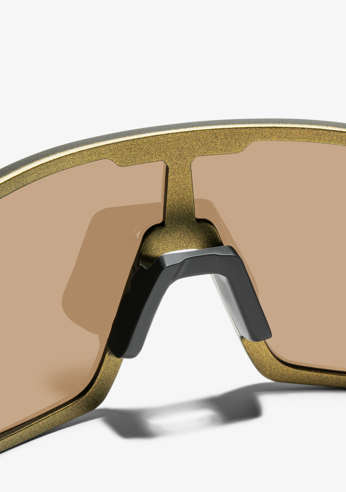 No matter the weather, no matter the field… explore new limits with the new Wind Limited collection by D.Franklin. Unmistakable sports sunglasses, created with high quality materials, superior lightness and an exclusive metallic finish. The Wind Limited Iridiscent Gold / Gold model guarantees maximum protection and comfort thanks to its panoramic mirrored lenses and silicone nose pads.