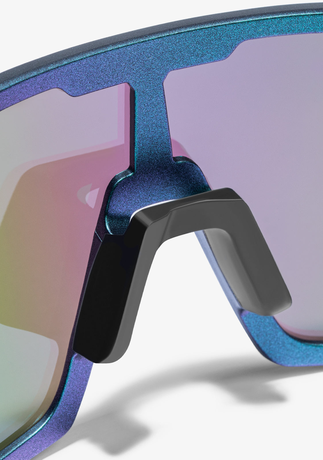 The Wind Limited Iridescent Navy / Green model ensures maximum protection and comfort thanks to its green panoramic mirrored lenses and silicone nose pads for a secure and ergonomic fit.